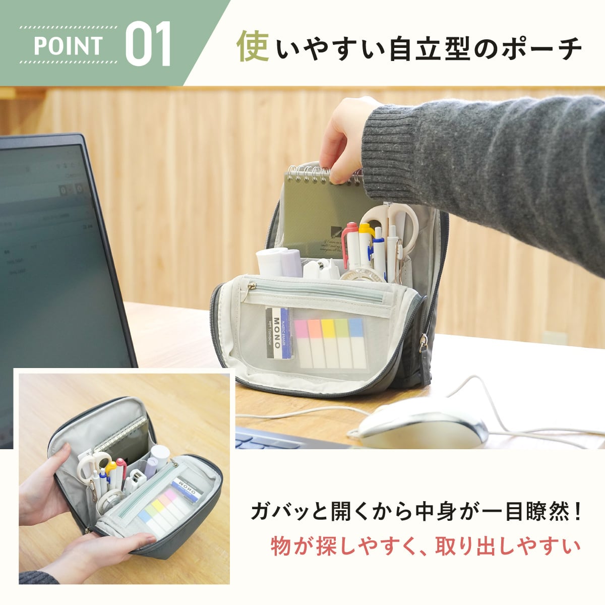 文房具 収納 大容量 仕事 筆箱 ポーチ ペンケース ペンスタンド 持ち運び ペンポーチ 自立 便利グッズ シンプル おしゃれ かわいい フリーアドレス 在宅ワーク リモートワーク 新生活 ガジェット ガジェットポーチ 社会人 オフィス デスク収納 文具収納