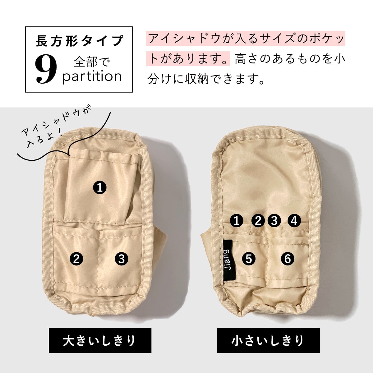 アイシャドウが入るサイズのポケットがあります。高さのある物を小分けに収納できます。