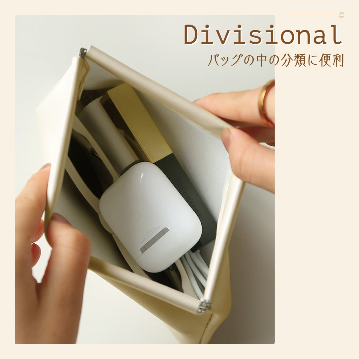 フラットタイプでマットな触り心地のミニポーチ。小物・アクセサリー・イヤホンなどのマルチ収納に